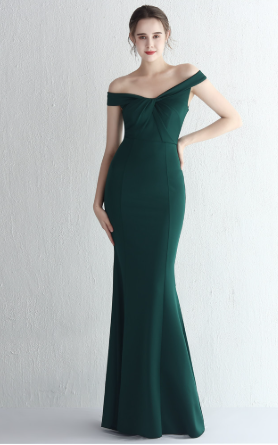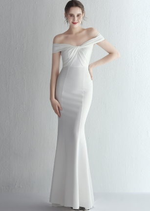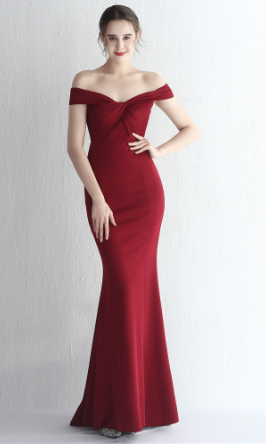 新款修身一字肩长款名媛晚宴显瘦鱼尾裙结婚车模展礼服